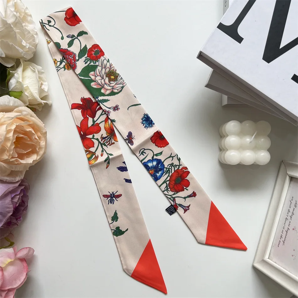 Frühling/Sommer Luxus lange Seide Schal weiblichen Druck dünne schmale Schal Tasche Haarba...