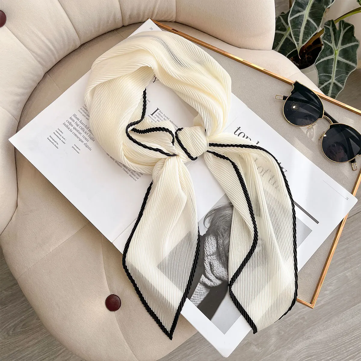 Frauen Plissee Satin Solide Schal Kopftuch langen Schal Sonnenschutz Haargummi Band Taschentuch Sati...