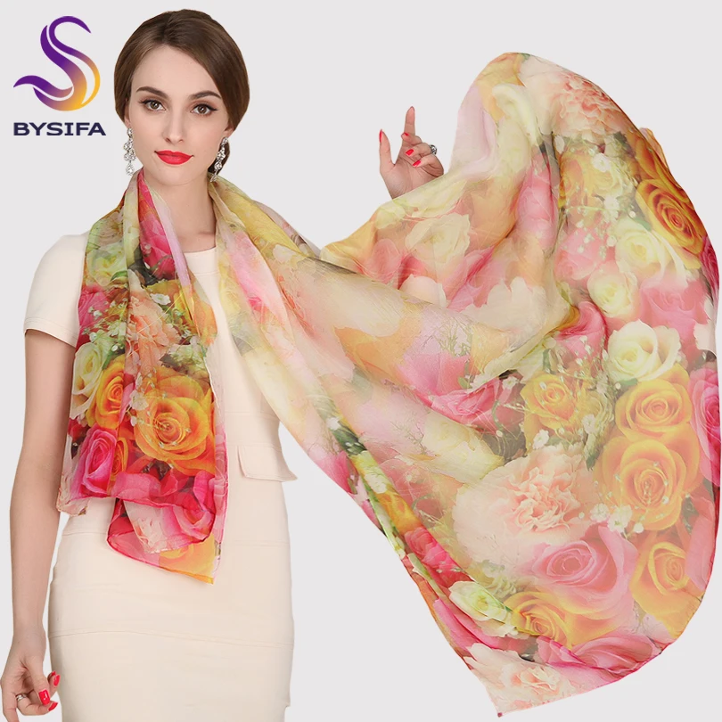 Neue Frühling Herbst Damen Reine Seide Schal Winter Zubehör Lange Design Rosa Schals Wraps...