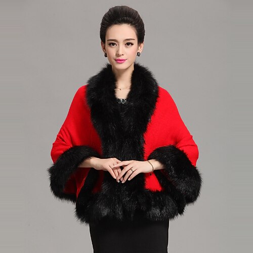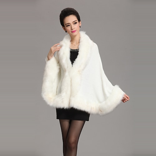 Damen Luxus Braut Kunstpelz Schal Wickelmantel Mantel Pullover Cape
