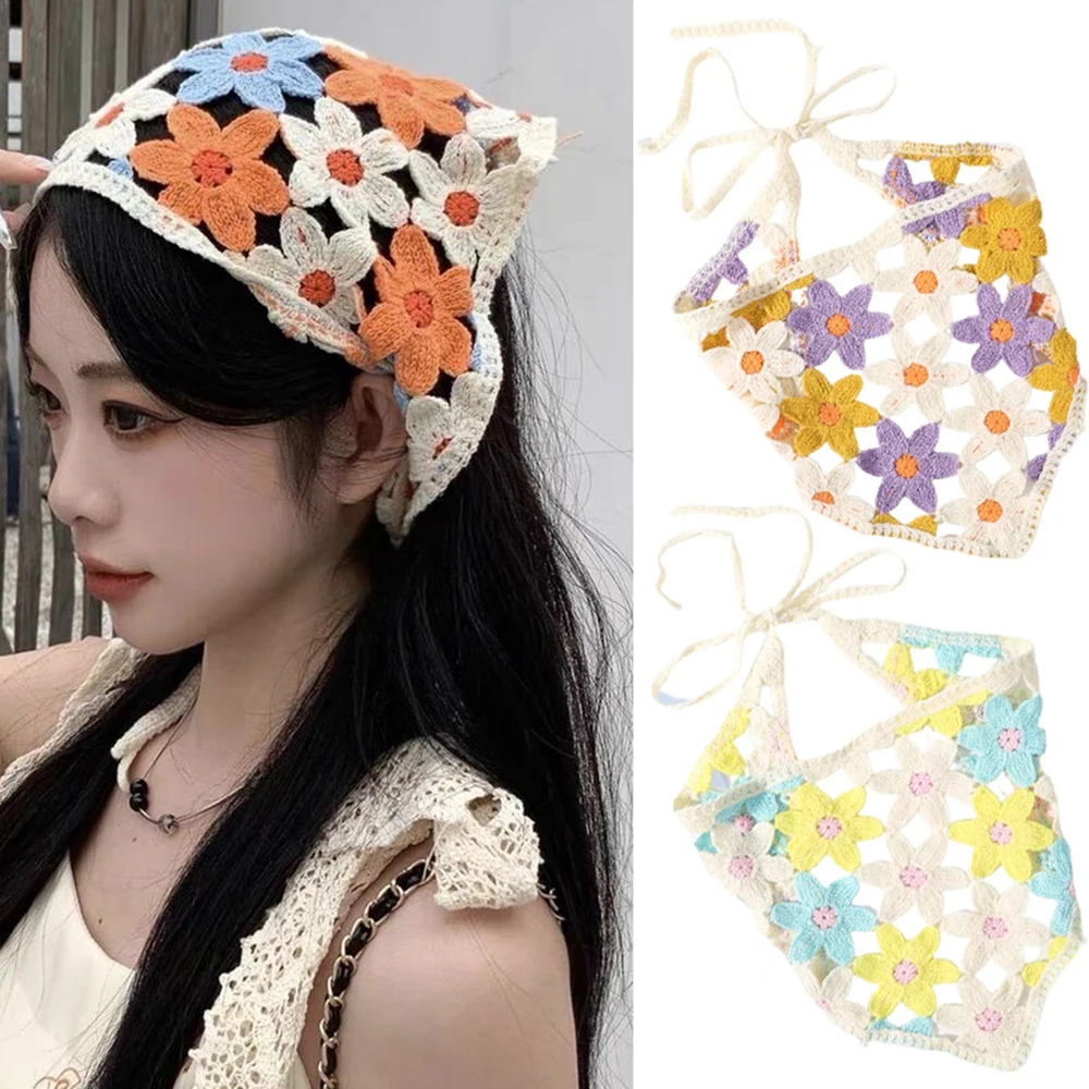 Awaytr häkeln Bandana Gänseblümchen Blume Haar Schal für Frauen 2022 Stirnbä...