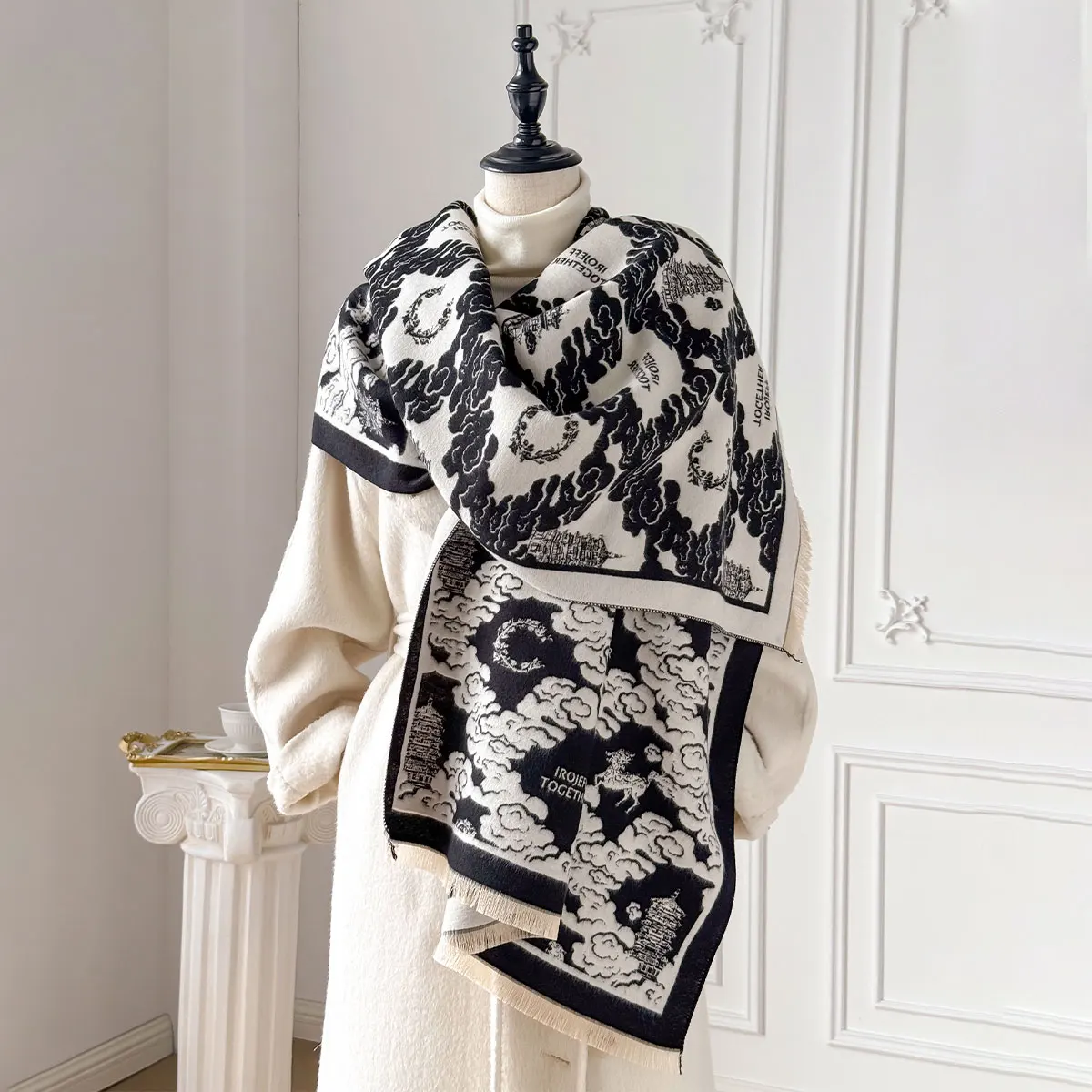 2025, neueste zweiseitige Buchstaben-Schals, Pashmina-Kaschmir, wei...