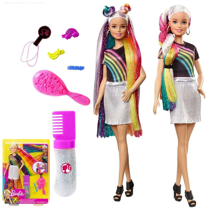 Barbie Fashionistas Regenbogen-Glitzer-Haarpuppe mit Zubehör und Kleidung Barbie Brinquedos Fas...