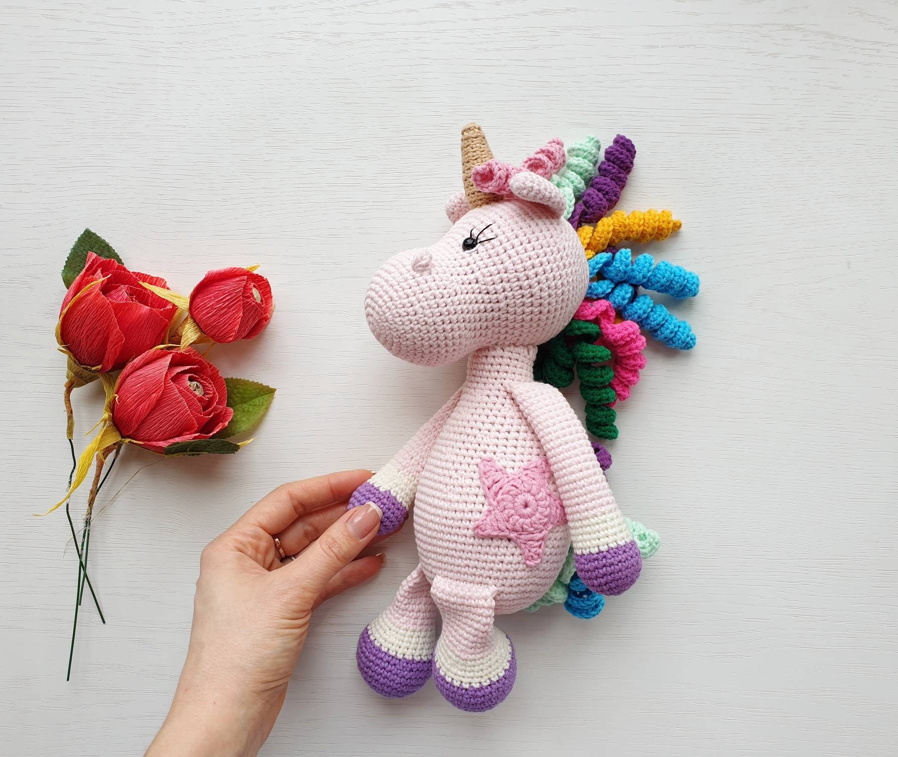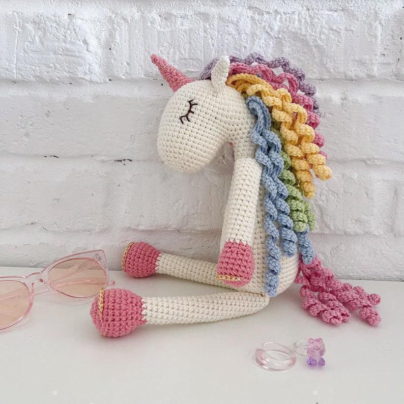 Diese niedliche häkeln Einhorn Spielzeugpuppe wird nicht gleichgültig Erwachsene und Kinde...
