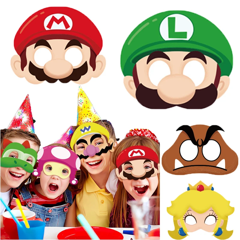 12 Stück Mario Bros Zubehör Kinder Party Maske Rollenspie...