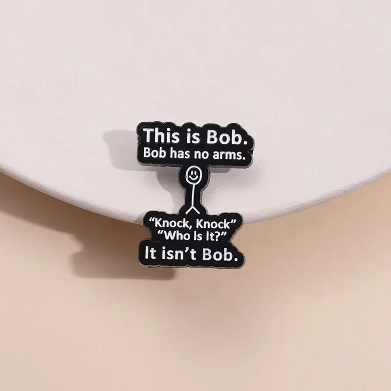 Lustige Geometrie Bob Emaille Pins Dies ist Bob hat keine Arme Knock Broschen Metall Revers Rucksack...