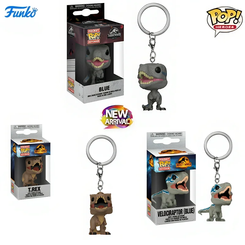 FUNKO POP Schlüsselanhänger Jurassic World T.REX VELOCIRAPTOR BLAU Vinylfigur Pocket Pop S...