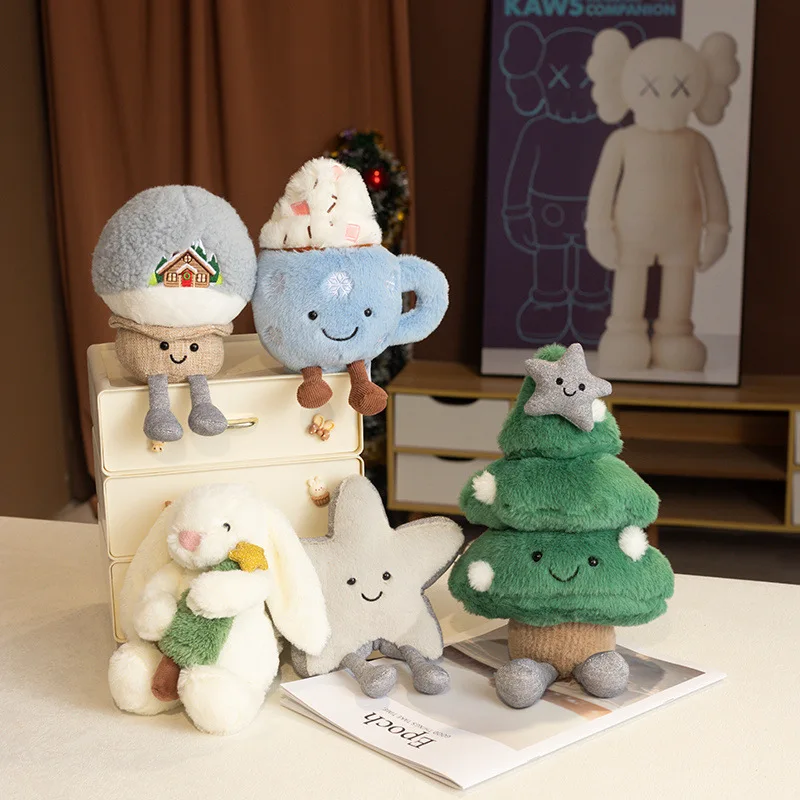 Süßes Weihnachtsserie-Plüschtier, gefüllter weicher Weihnachtsbaum, Schneekugel...