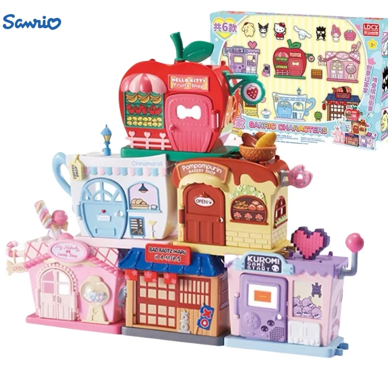 Sanrio Cinnamoroll Hello Kitty Kuromi Spielhaus Stapelbar Street View Spleißen Spielzeug Figur...