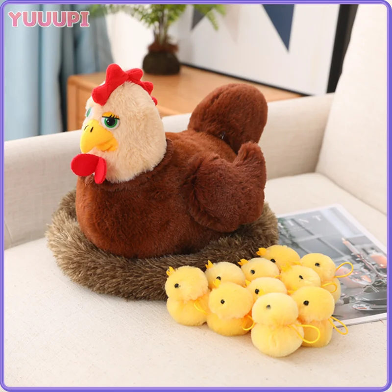 Ein Set Kükenfamilie Plüschtiere Huhn Mutter und Baby Kuscheltiere mit Nest Familie Bauern...