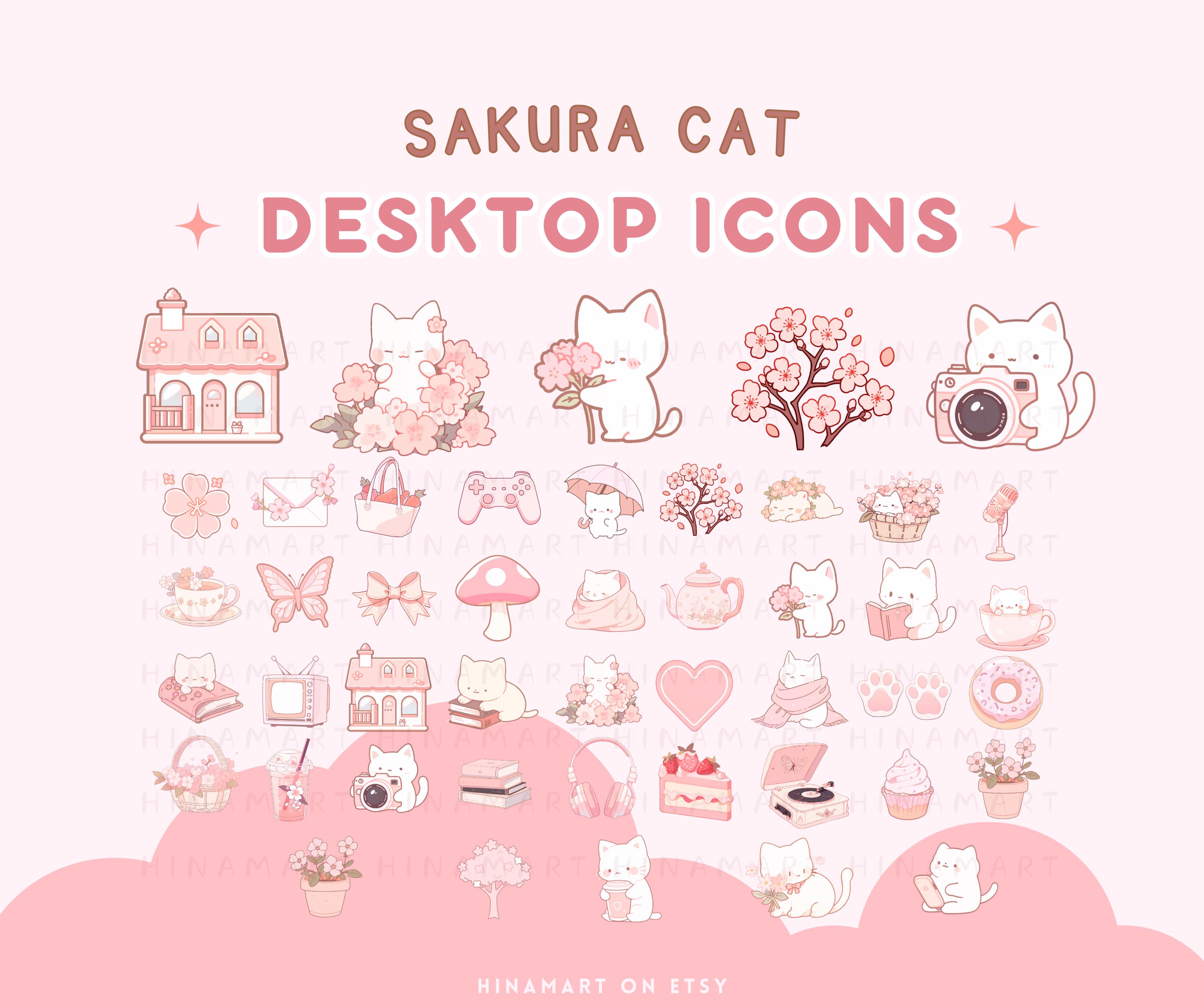 Sakura Katze Rosa Desktop Icons Set Niedlichen Desktop Organizer Sy...