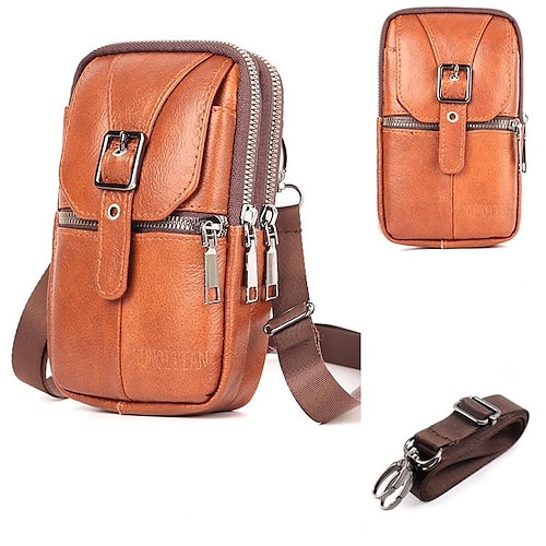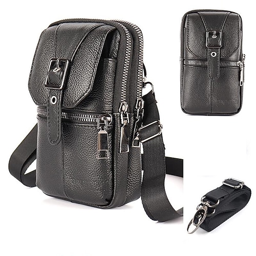 Multifunktionale Umhängetasche aus echtem Leder für Herre...