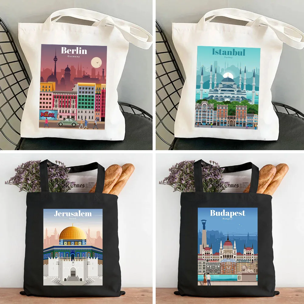 Istanbul Jerusalem Athen Bali Bangkok Barcelona Basel Berlin Budapest Damen Canvas Schulterhandtasch...