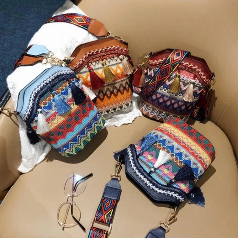 Vintage nationale Frauen tasche Quaste ethnische hand gewebte Umhängetasche Hippie Sling Umh&au...