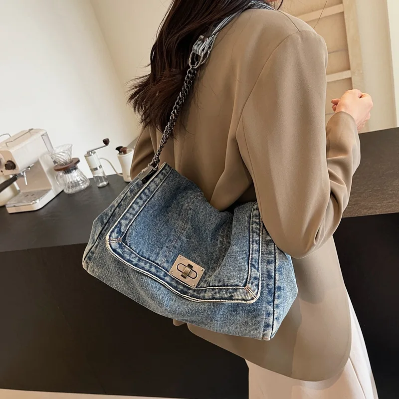 2025, neue Jeanstasche, Damen-Kettentasche, Tragetasche mit großem Fassungsvermögen, modi...