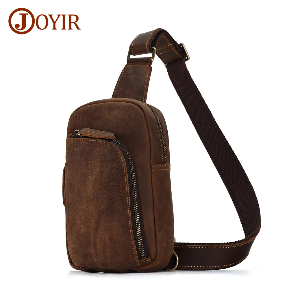 Joyir männlich verrückt Pferd Leder Rerto Brust Pack Reise Schulter tasche für 7.9 &q...