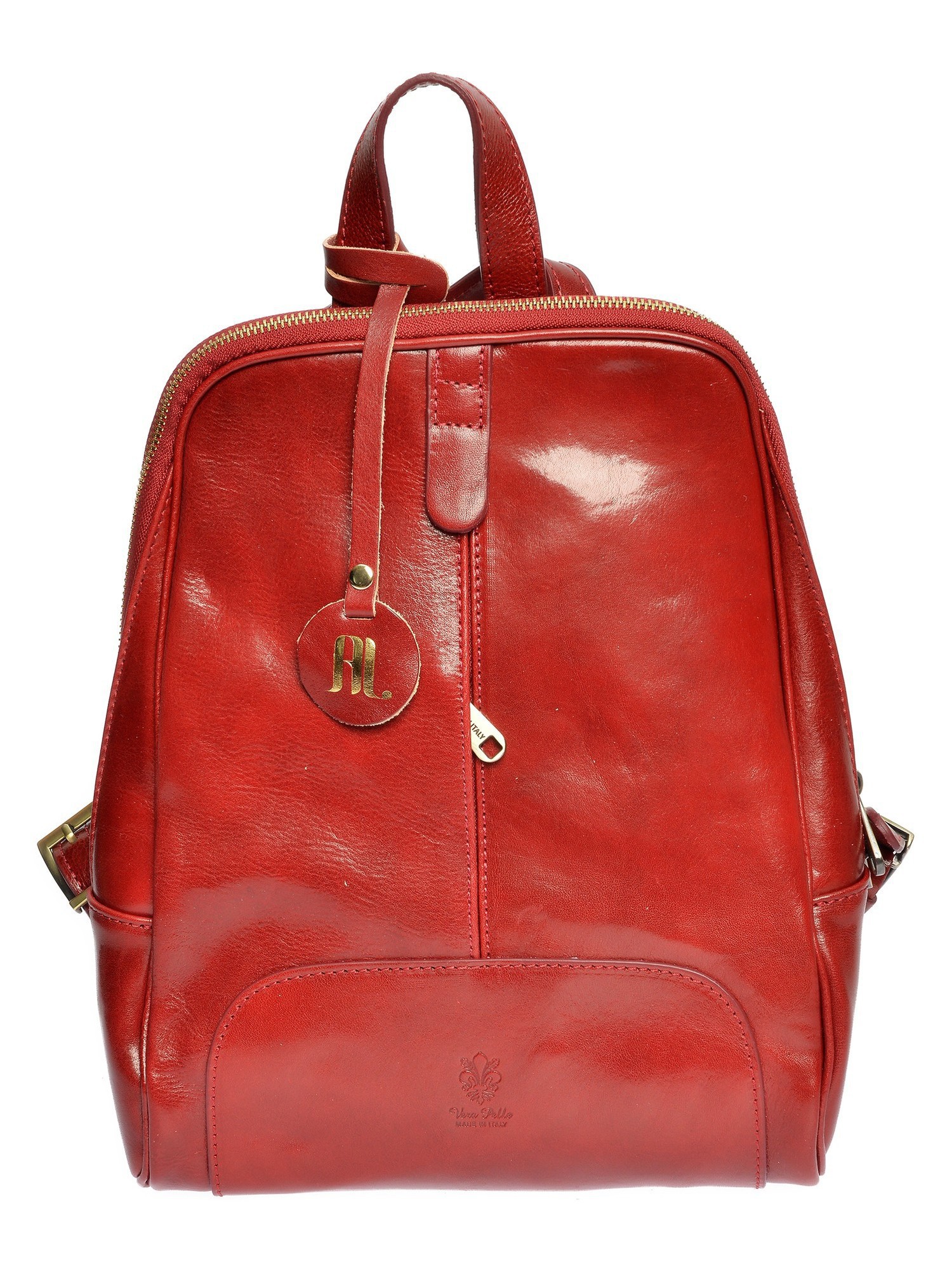 Rucksack 100% Rindsleder Obere Reißverschlussöffnung Innentaschen Rückentasche mit R...