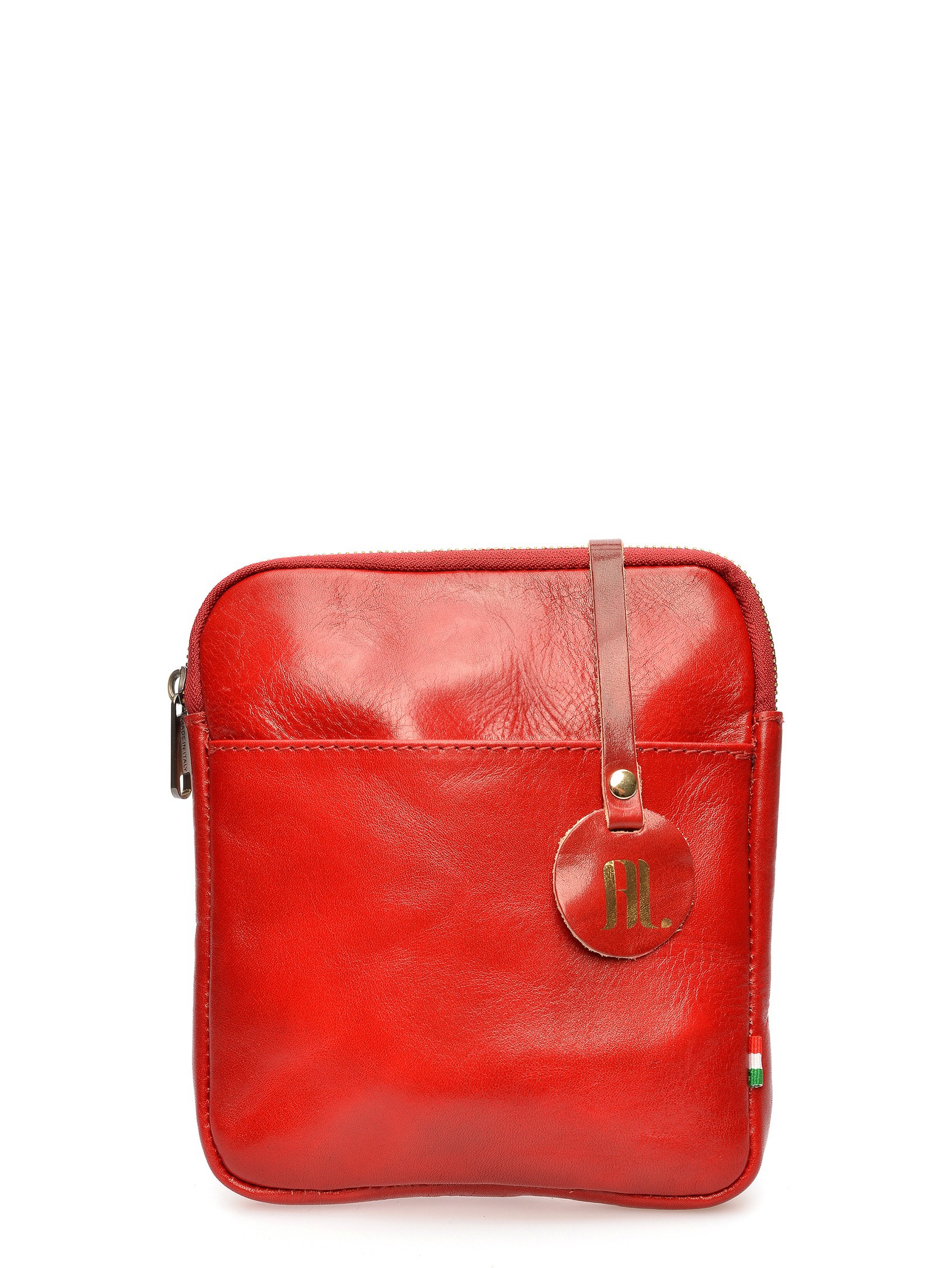 Crossbody Bag 100% glattes Leder Oben mit Reißverschluss und außen mit einem Reißv...