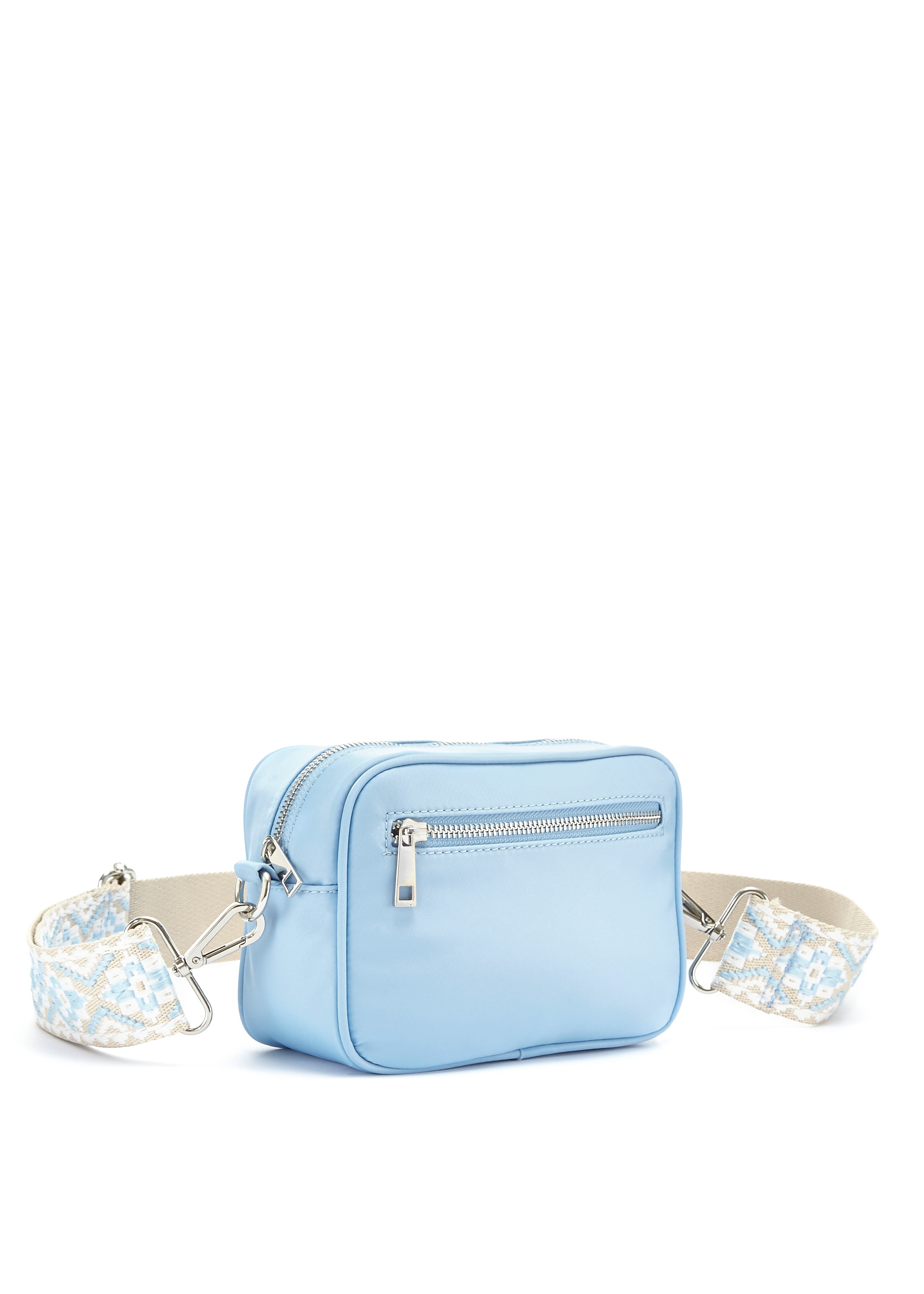 VEGAN. Mit 2 auswechselbaren Schulterriemen. Maße H/B/T: 14/20/8cm. Aus Textil in Nylon-Optik....
