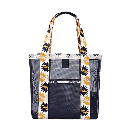 Damen Strandtasche aus Netzstoff mit Blumenmuster – groß...