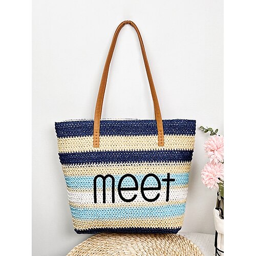 Damen Handtasche Strandtasche Strohsack Stroh Einkauf Festtage Stra...