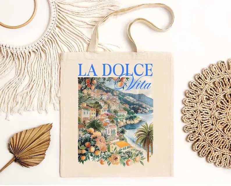 Vintage italienische Kunst-Einkaufstasche La Dolce Vita Canvas-Tasche im italienischen Stil Vintage ...