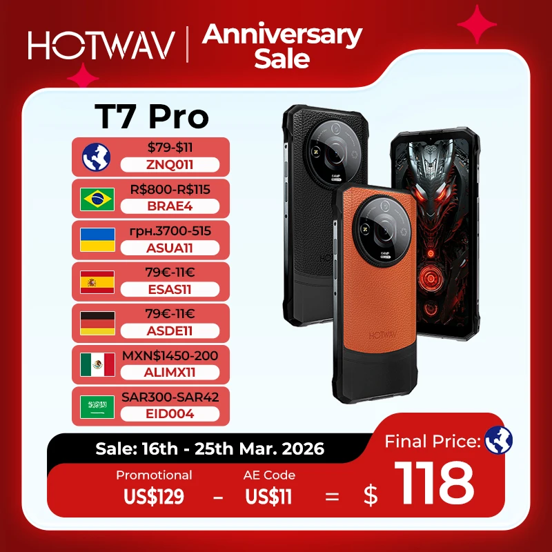 [World Premeire] HOTWAV T7 Pro Robustes Smartphone 6,6'' FHD+ 2K 6280mAh 12(6+6)GB 256GB Mobiltelefo...