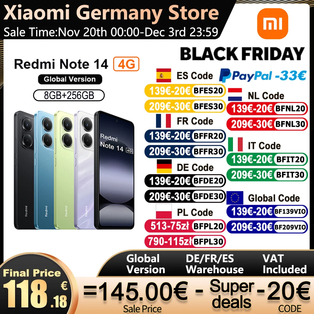 Globale Version Xiaomi Redmi Note 14 4G NFC Smartphone MediaTek Hel...