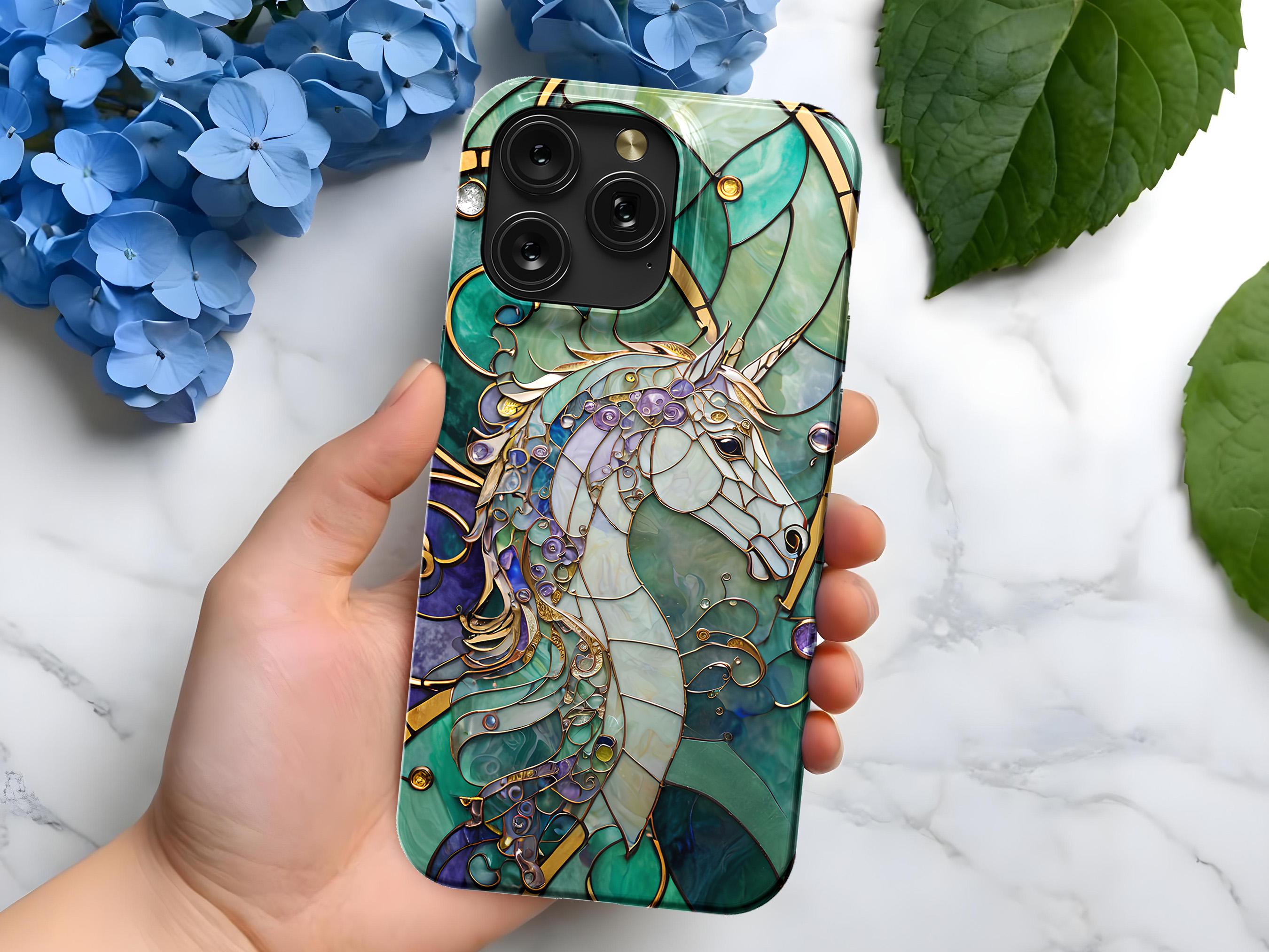 **Einhorn Glasmalerei-Telefon-Hülle** Erhöhe den Schutz und den Stil deines iPhones mit de...
