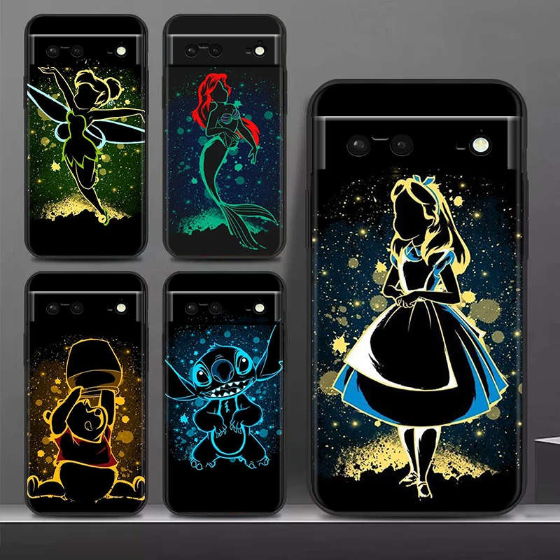 Disney Princess stoß feste Shell-Handy hülle, schwarzes Silikon, Anime, Google Pixel 8, 7...