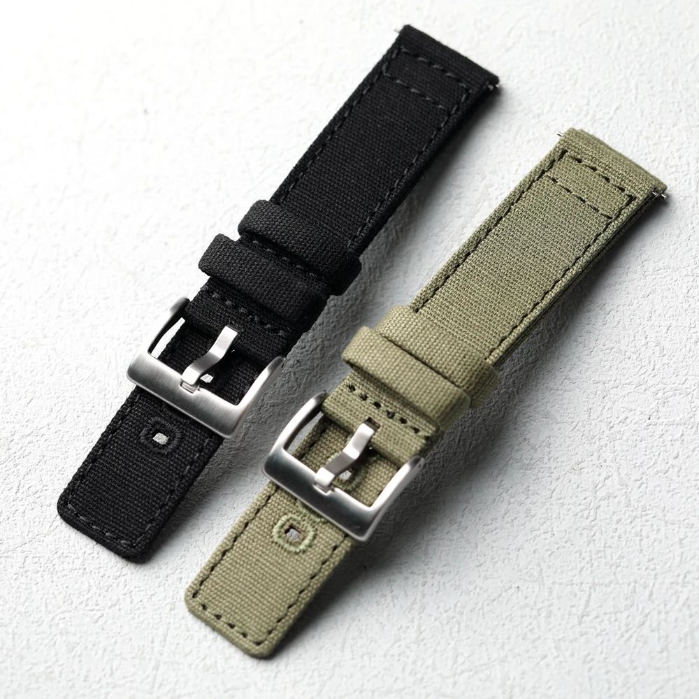Double layer thickened canvas strap 20MM 22MM black green quick release soft, wear-resistant and dur...