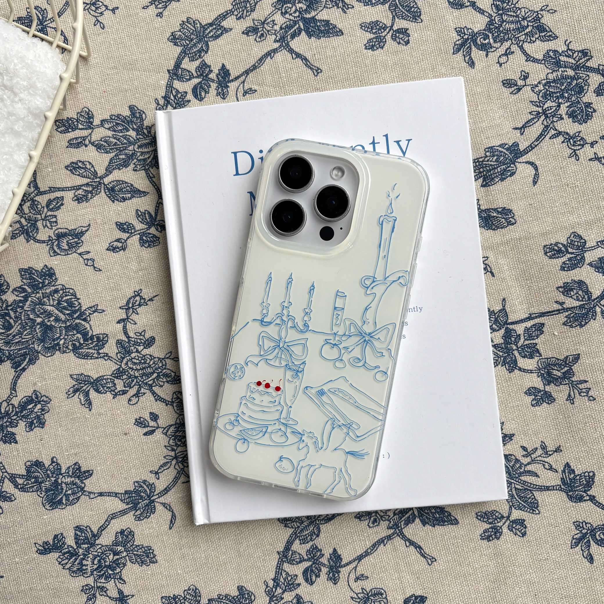 Blaue Linie, Skizze, Abendessen, Kerzenständer, Kuchen, Geschirr, Muster, weiß, glän...