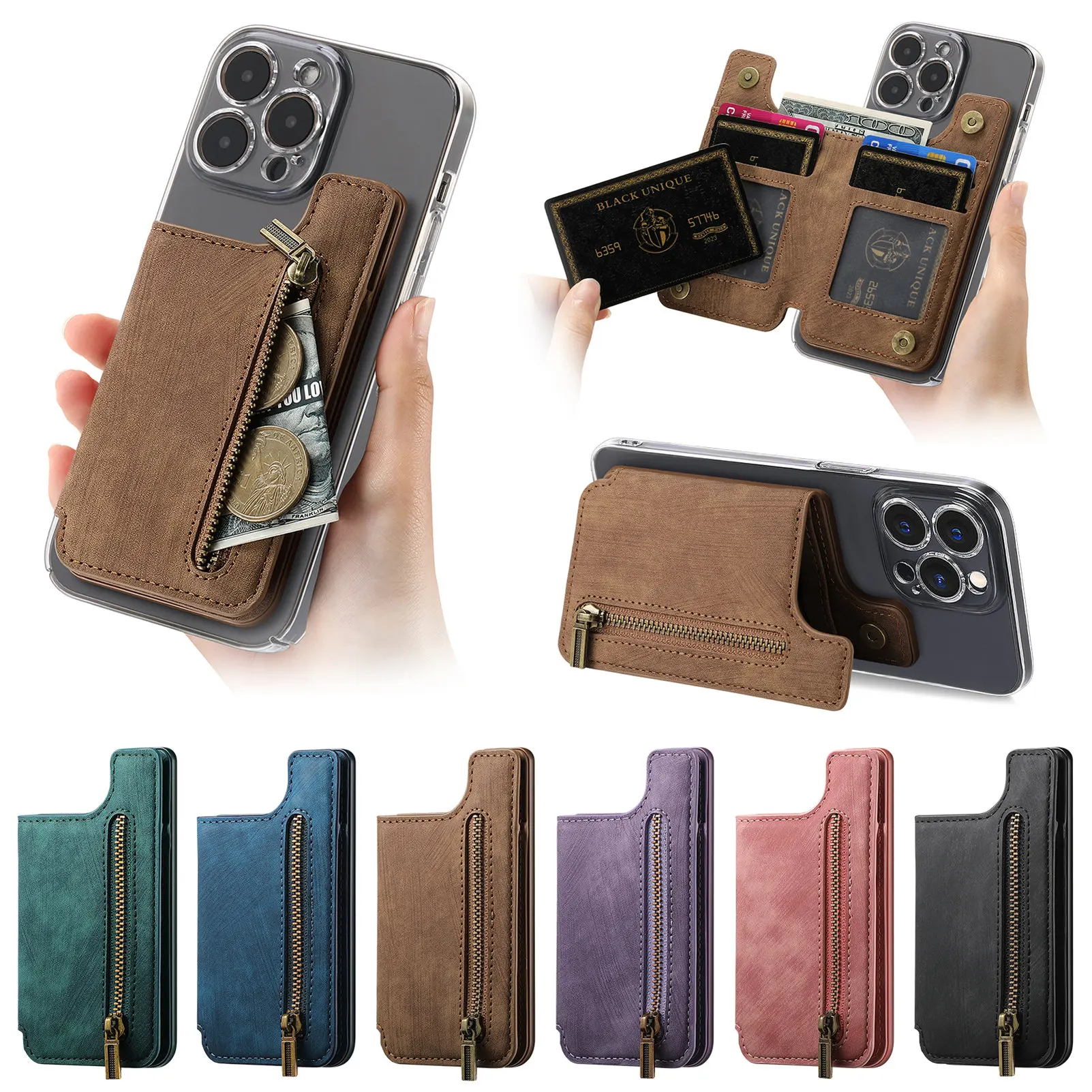 1Pc Retro Telefon Fall Karte Halter Mit PU Leder Zurück Aufkleber Karte Tasche Tragbare Klebsto...