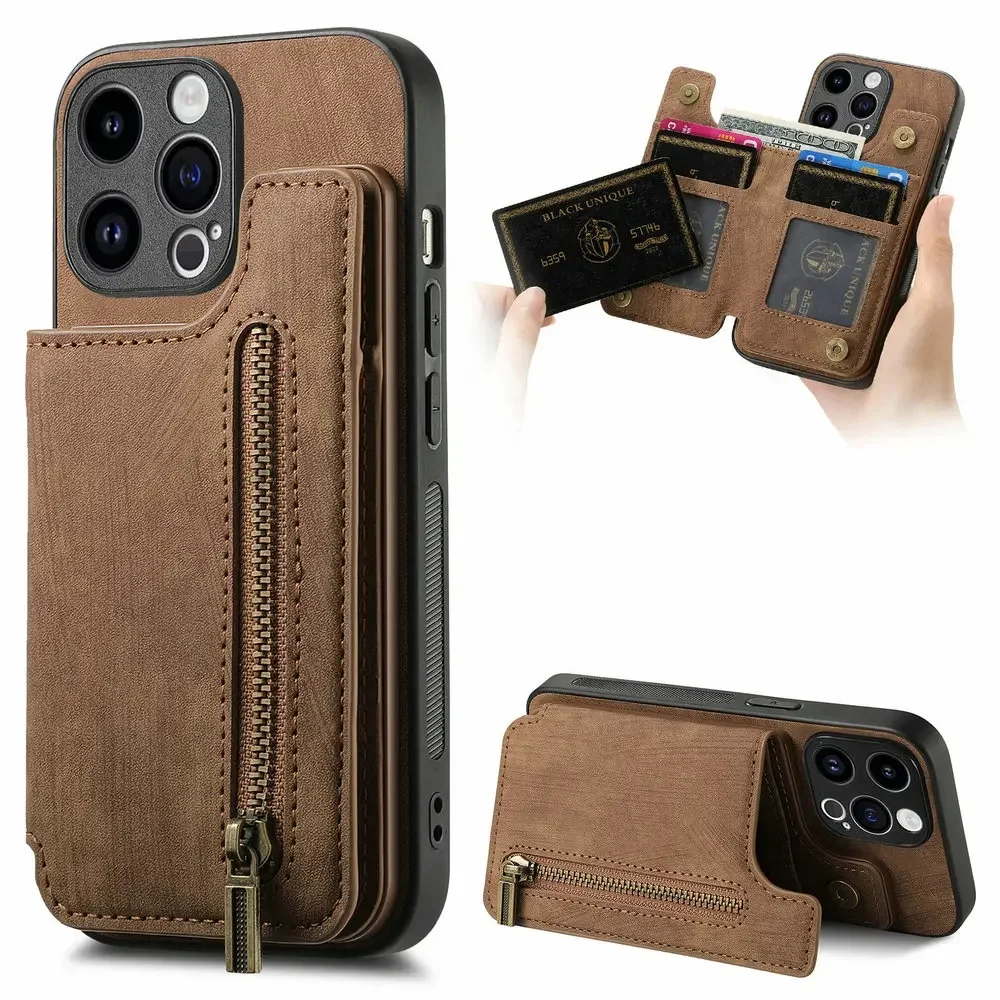 Zipper Wallet Etui für iPhone 17 16e 16 15 Pro Max Fall Leder Karte Funda iPhone 11 12 Mini 13 ...