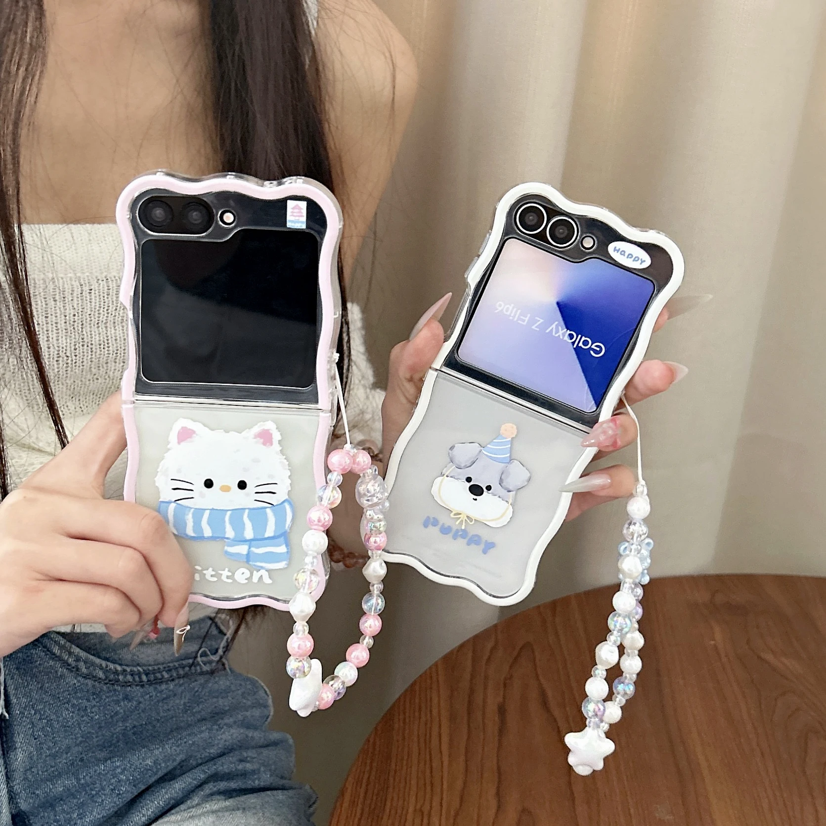 Für Samsung Galaxy Z Flip 6 5 4 3 Telefon Fall Nette Schal katze Welle Stoßfest Abdeckung...