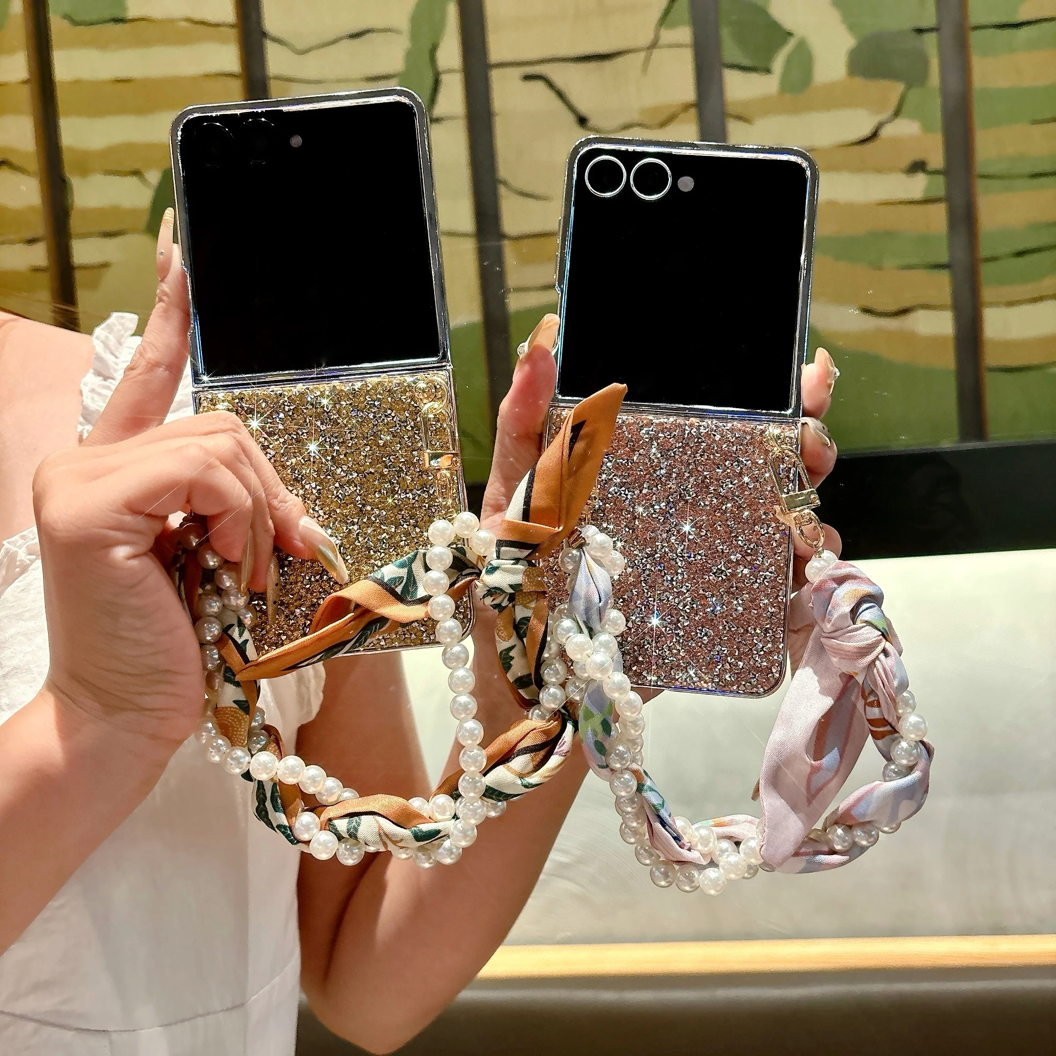 Handkette Handschlaufe Perle Seidenschal Handyhülle für Samsung Galaxy Z Fold 6 5 4 3 Fold...