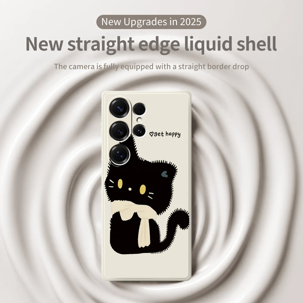 Schwarze Katze Schal Design Handytasche für Samsung Galaxy S25 S24 S23 S22 S21 S20 Ultra Plus S...