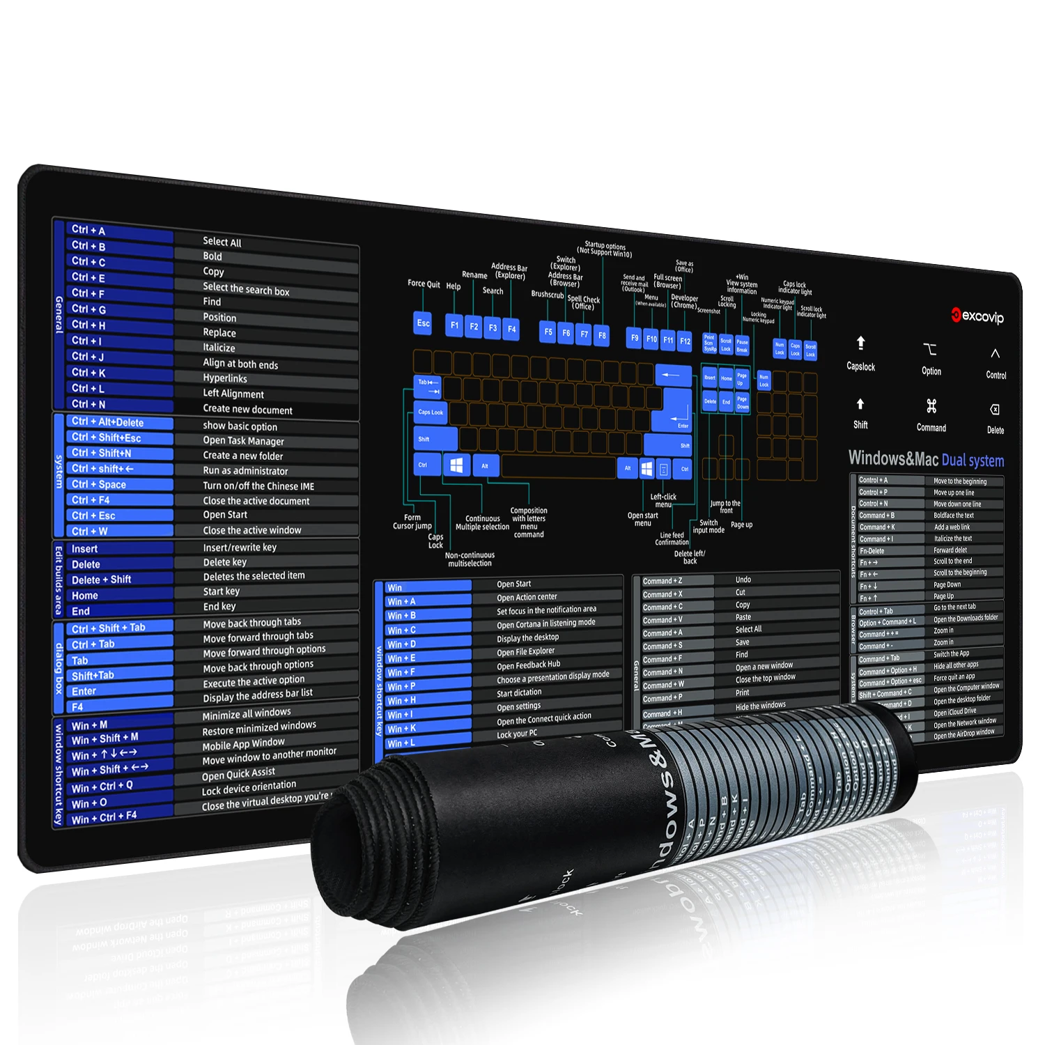 EXCO Shortcuts Mauspad für Mac OS/Windows, großes, erweitertes Büro-Tastatur-Mauspad...