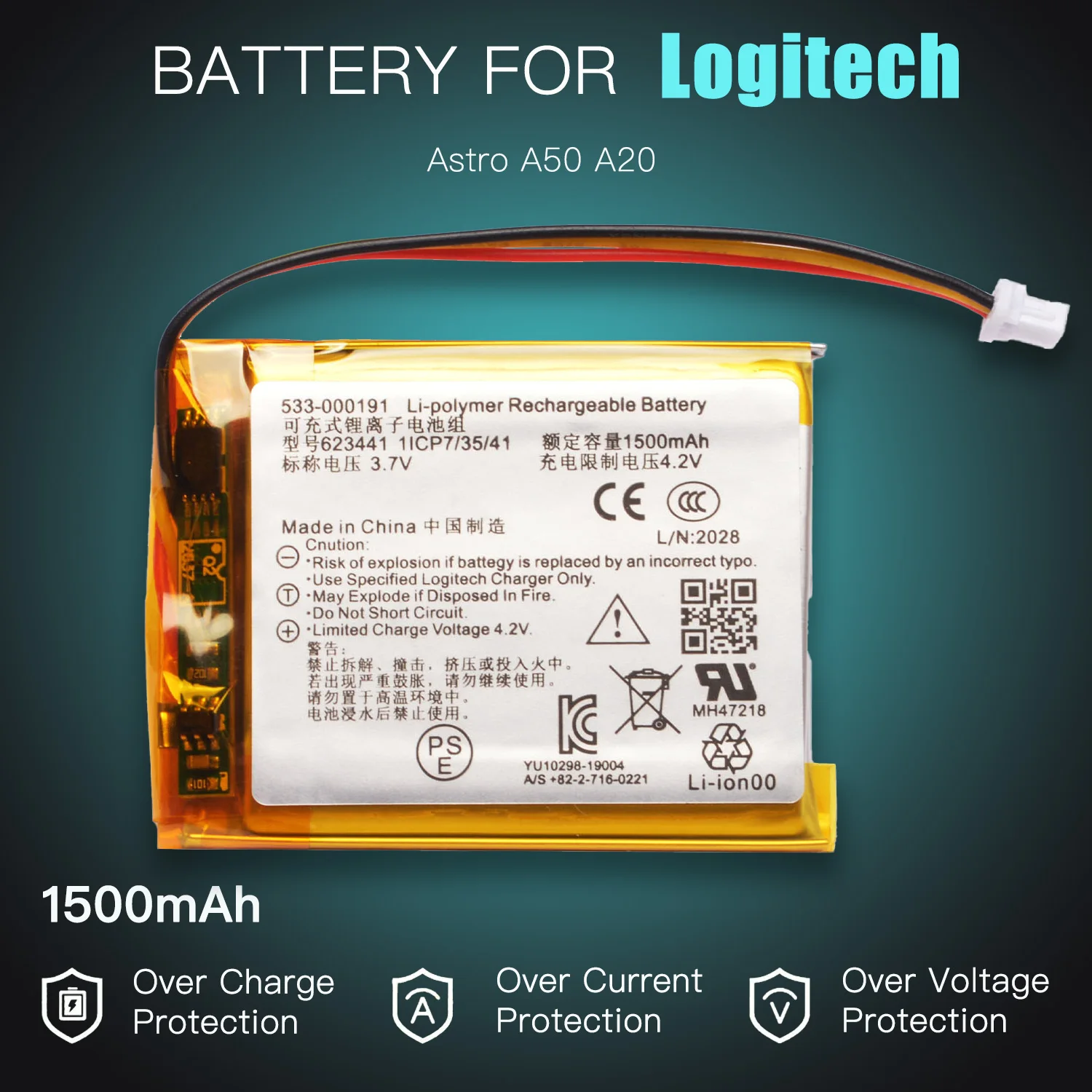 533-000191 Akku für Logitech ASTRO Gaming A50 A20 Wireless Headset