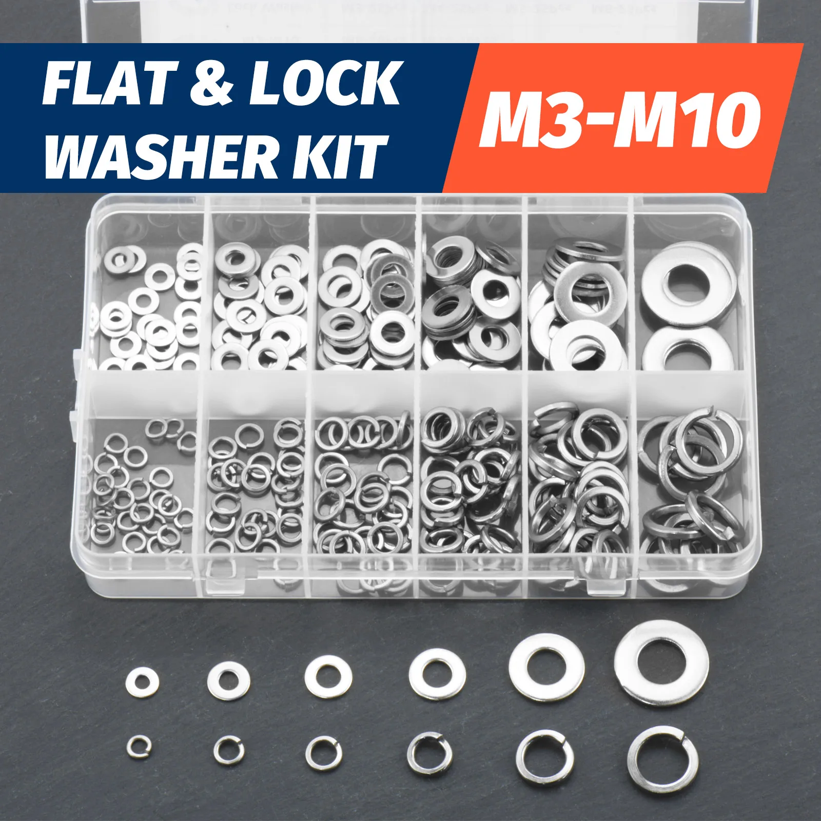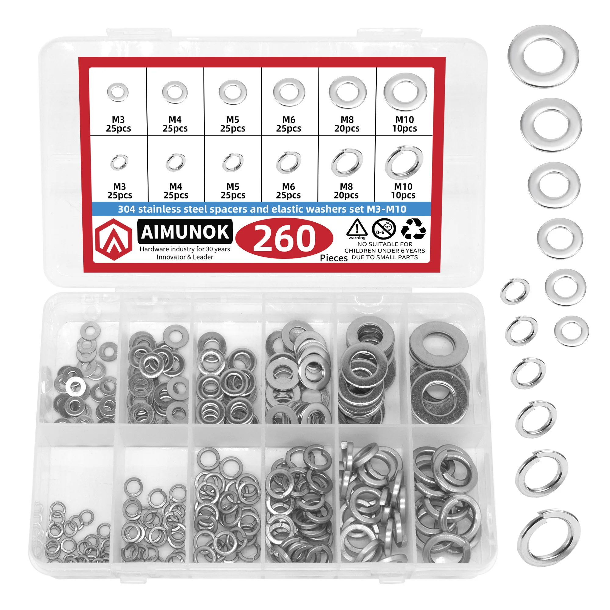 260-teiliges Sortimentsset für Sicherungs- und Unterlegscheiben aus Edelstahl, M3, M4, M5, M6, ...
