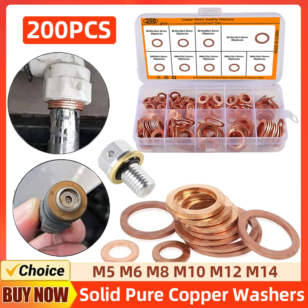 200/100Pcs Kupfer Flache Unterlegscheibe Set O Ring Kupfer Dichtung...