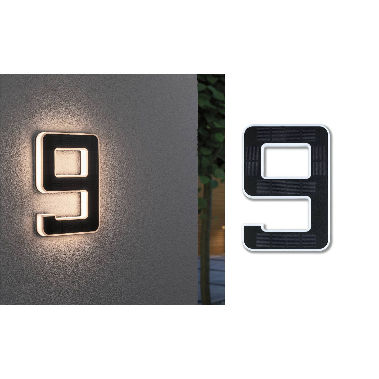 Paulmann LED-Solar-Hausnummer 9 Solar-Hausnummer, schwarz, Kunststo...