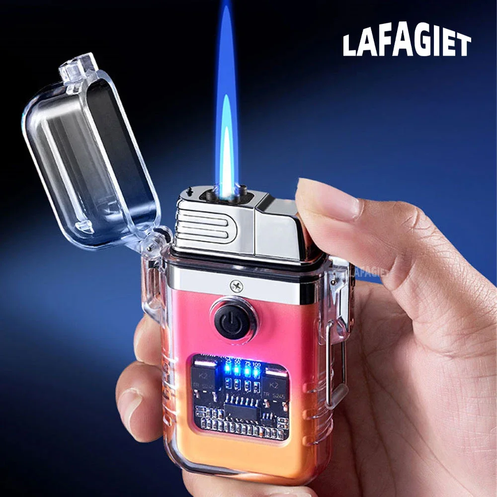 2-in-1 wasserdichtes elektrisches Feuerzeug, nachfüllbar, Butangas, Jet-Flammenfeuerzeug, Typ C...
