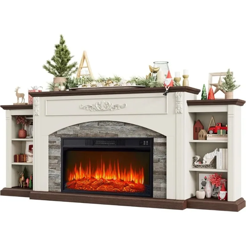 78-Zoll-Elektrokamin mit Kaminsims, Kamin-TV-Ständer für ...
