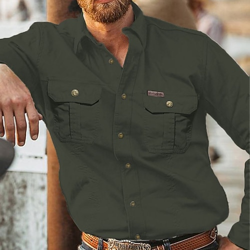 Herren Arbeitshemden Arbeitshemd Cargohemd Marineblau Kaki Hell Gra...