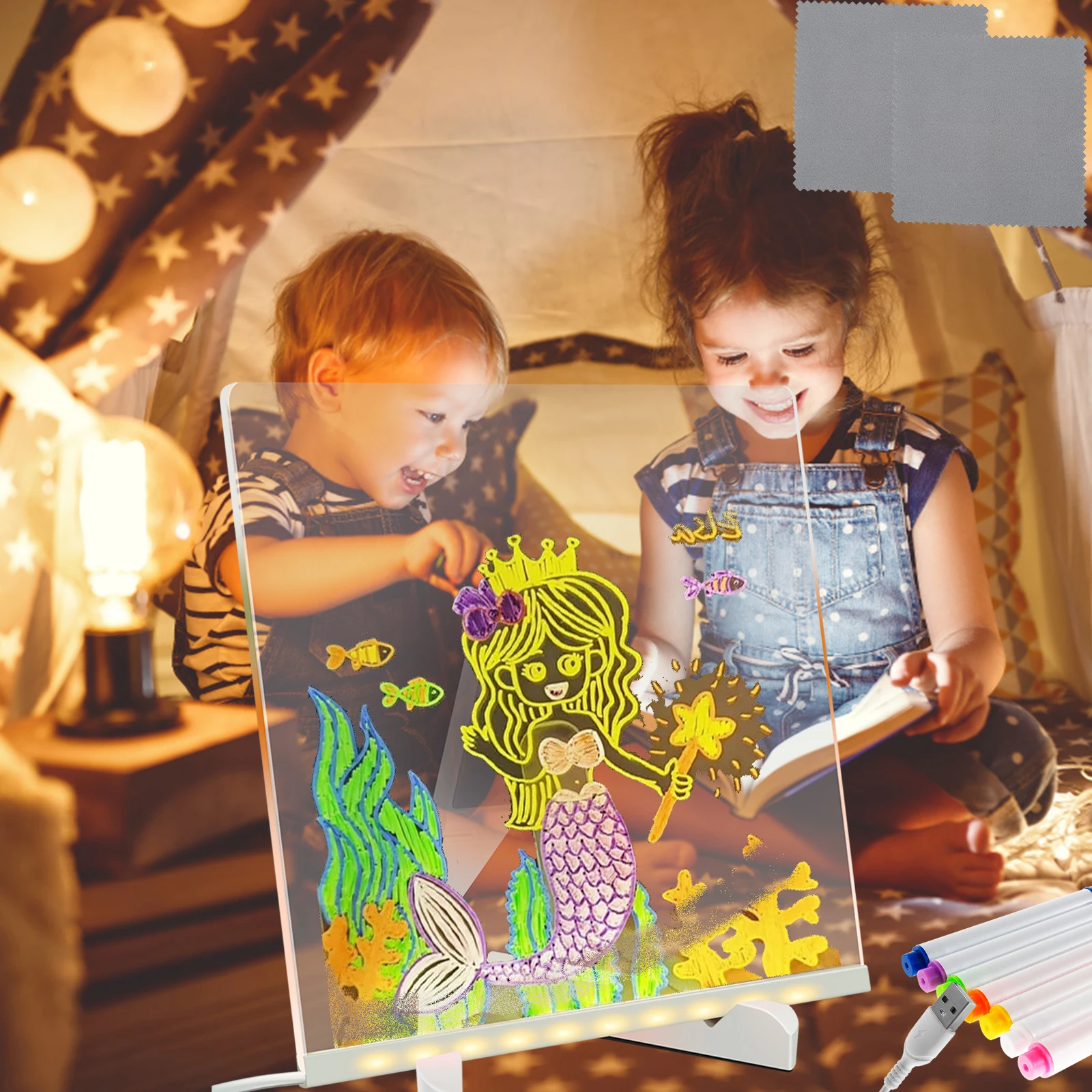 LED Dry Erase Board beleuchtete Message Board mit Stand kreative LED Acryl Note Board Mehrzweck Desk...