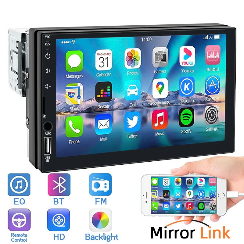 7 Zoll 1 Din Autoradio MP5 Multimedia Player Touchscreen FM ISO Power Aux Eingang Bluetooth USB Mirr...