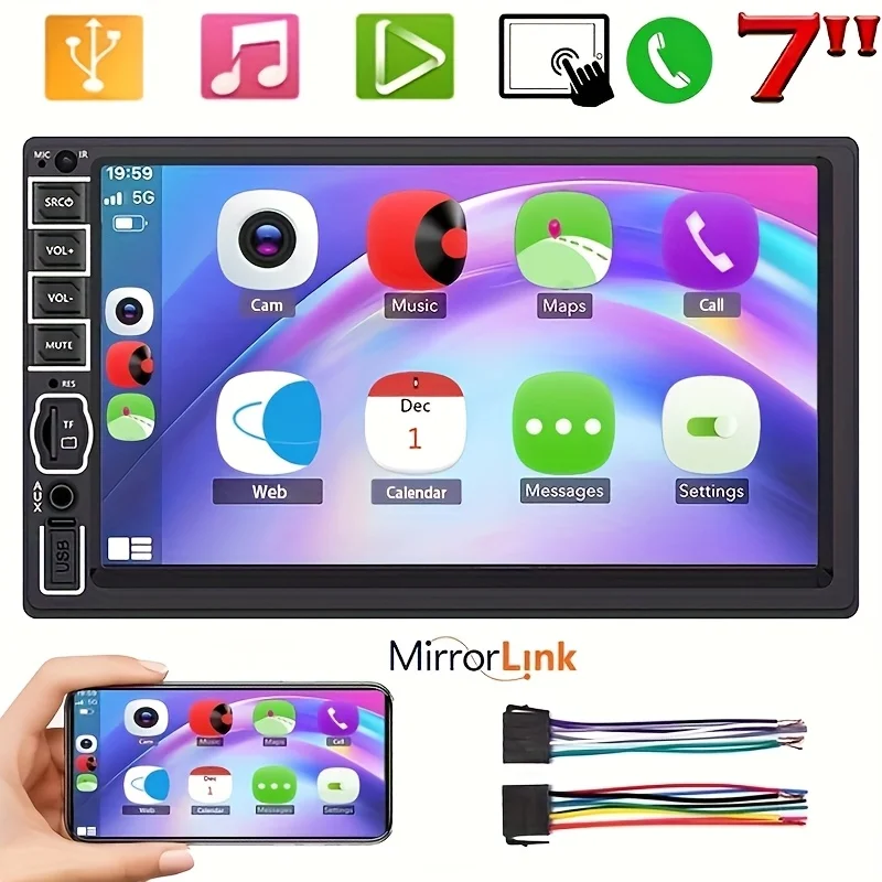 7-Zoll-HD-Touchscreen-Autoradio – 2 Din MP5-Multimedia-Player mit Mirror Link, SD-Funktion, un...