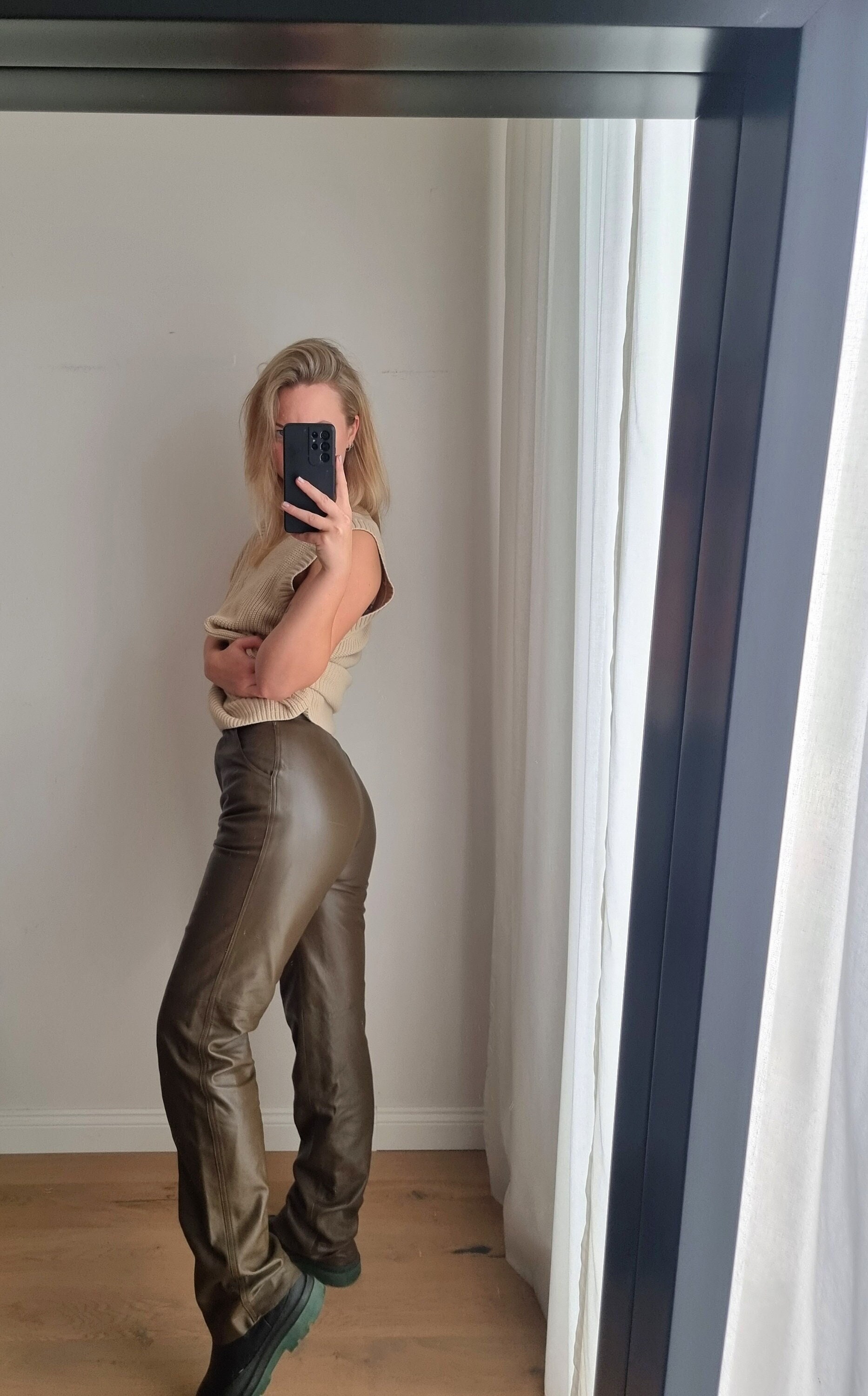 Khaki Lederhose / Echtlederhose / Braune Lederhose / Gerade Lederho...