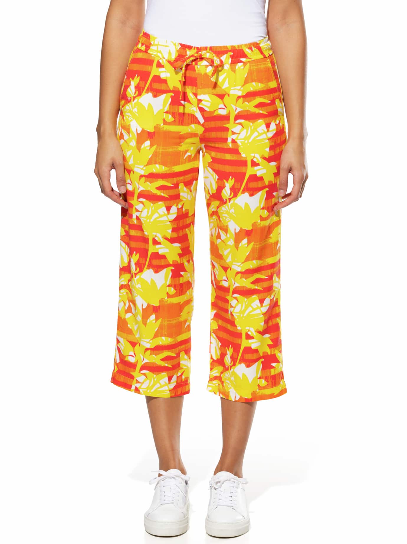 Walbusch Damen Lyocell-Culotte Palmenprint Rot bedruckt
